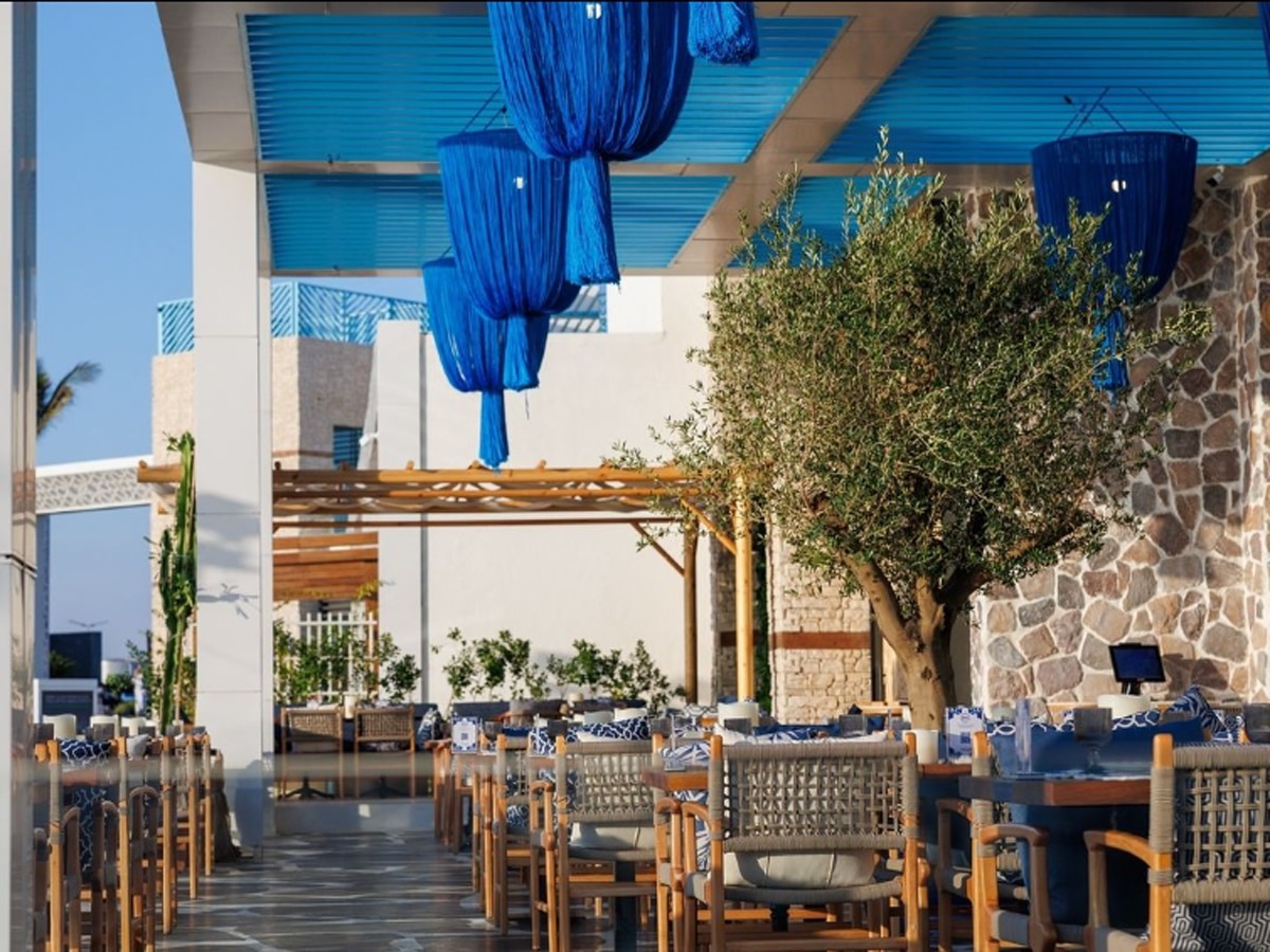 A sophisticated outdoor terrace design and fit-out for Petit Café, located within the luxury grounds of the Park Hyatt Jeddah. The project blends Mediterranean-inspired textures with modern architectural elements to create a premier waterfront dining experience.