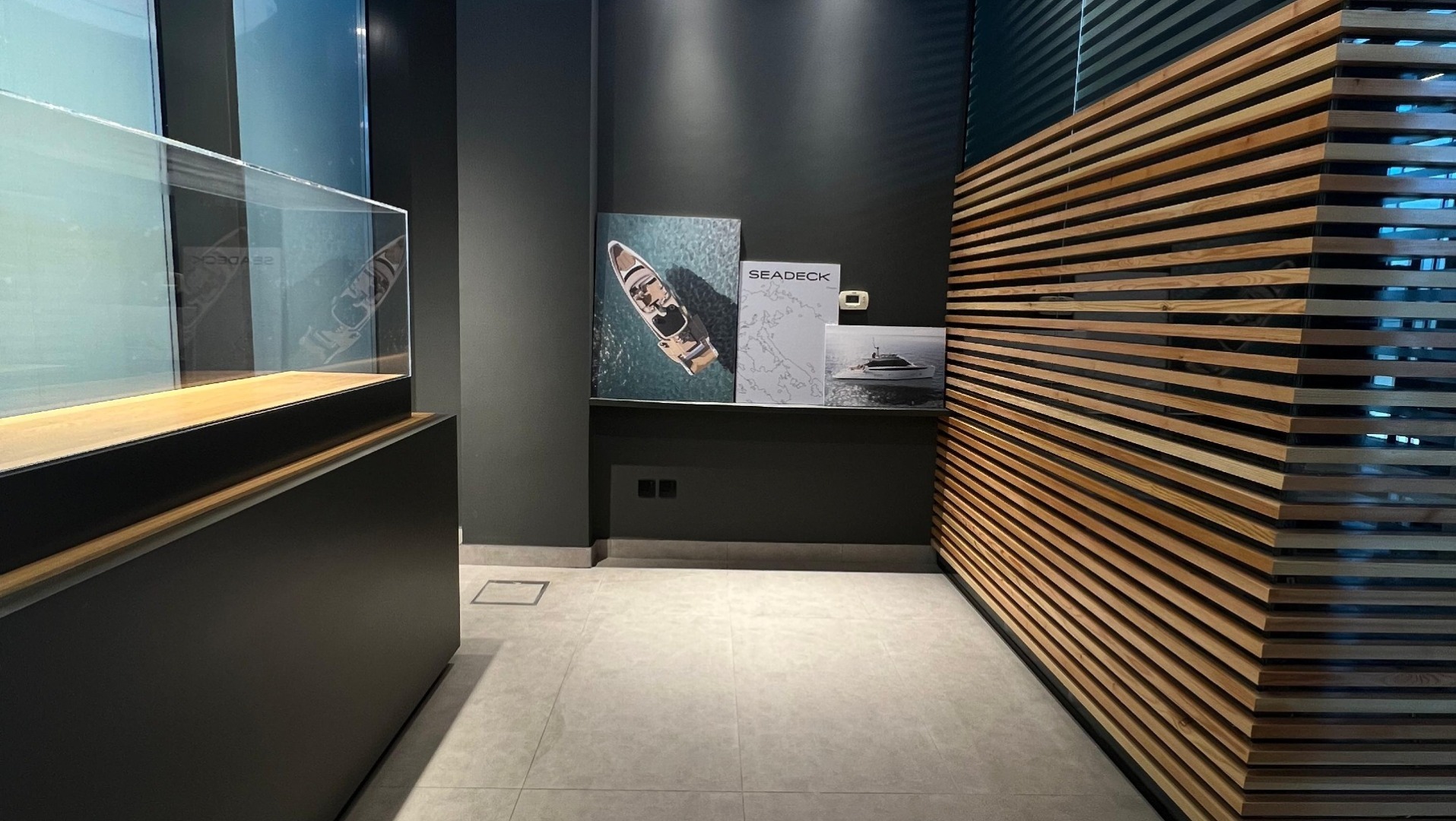 A high-end interior fit-out for the official Azimut Yachts showroom, located within the prestigious Jeddah Yacht Club & MarinaThe showroom design reflects the luxury and precision of the Azimut brand, utilizing a modern maritime aesthetic
